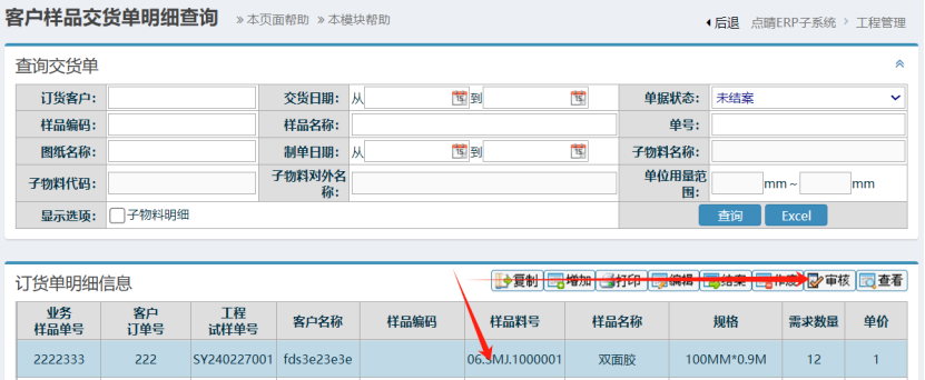 [点晴永久免费OA]点晴ERP-样品交货提醒单审核操作