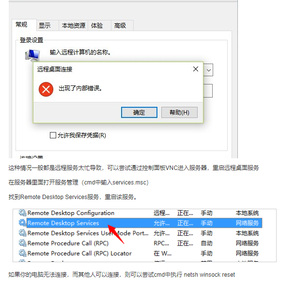 Windows远程桌面“出现了内部错误”终极解决方法: