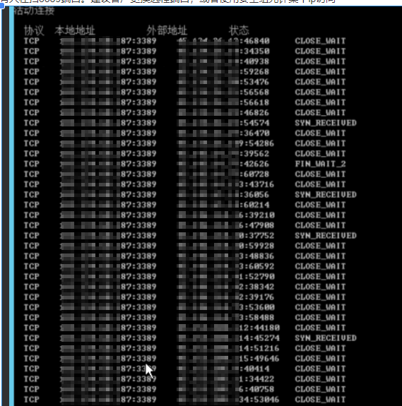2、远程端口被扫 netstat -aon | findstr "3389"