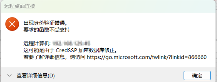 二、Windows11家庭中文版连接远程桌面,出现身份验证错误