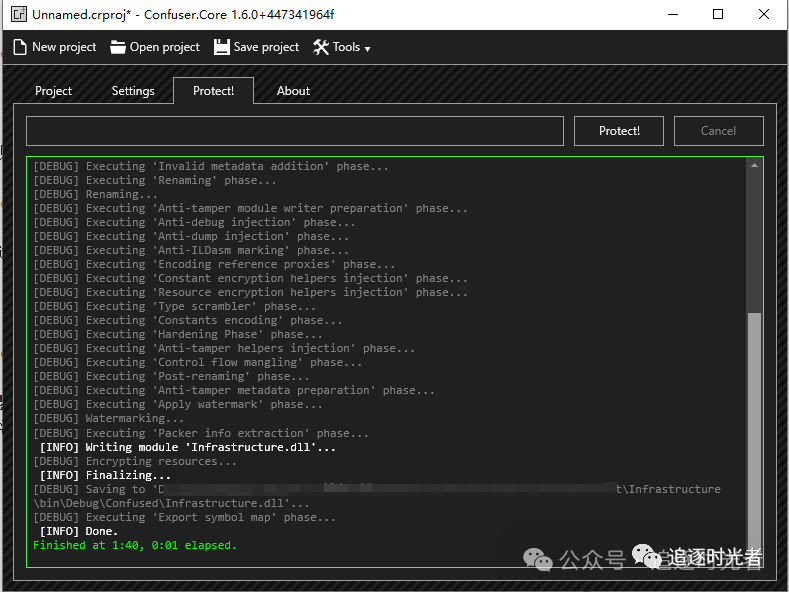 点击【Protect!】,就开始混淆了,Finished代表混淆完成并成功。