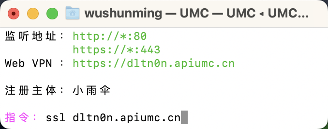 1. 在Apiumc指令窗口 输入 ssl [domain],如下图:
