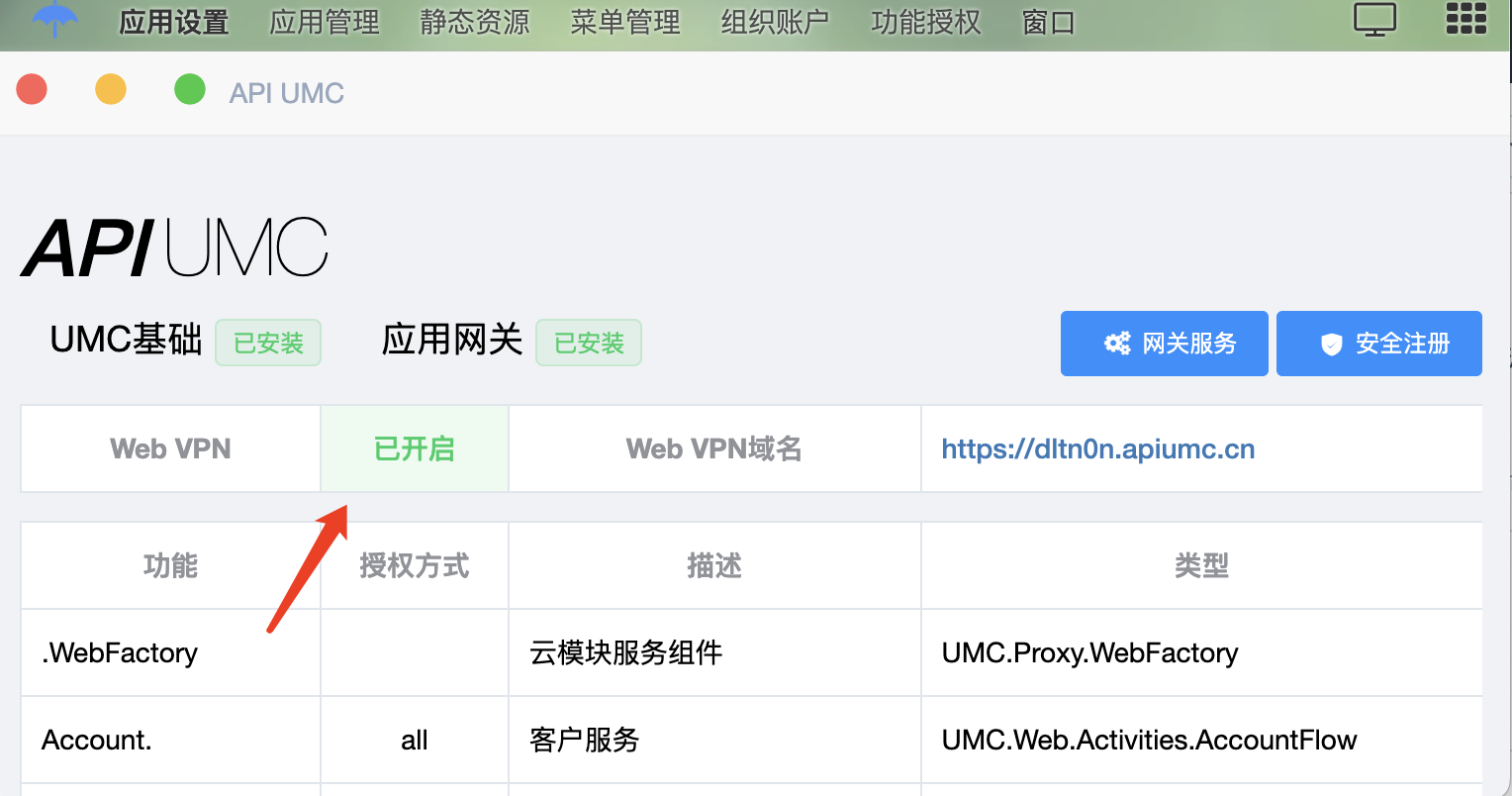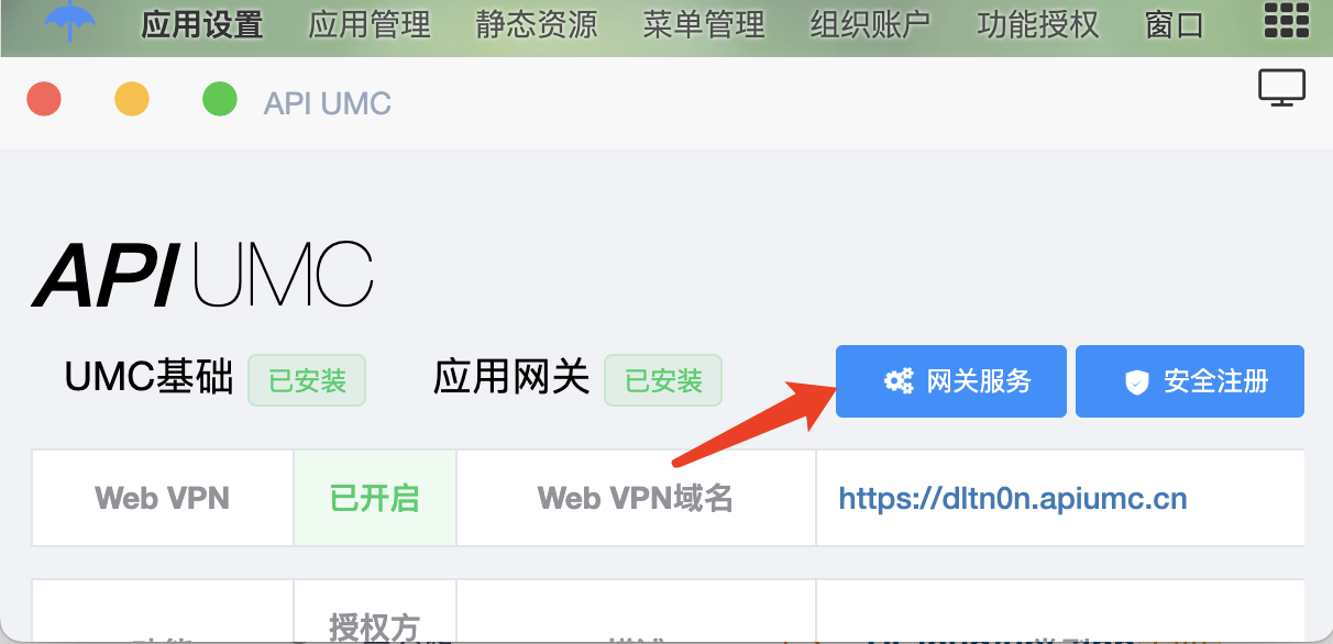 1. 云桌面--应用设置--网关服务中申请,如下图: