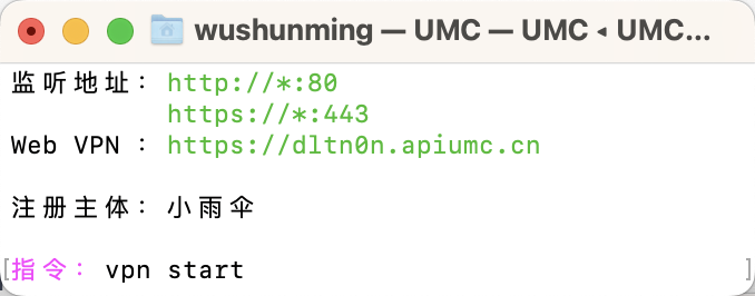 1. 在Apiumc指令窗口,输入 vpn start,如下图:
