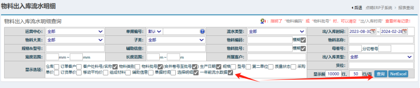 [点晴永久免费OA]点睛ERP-流水界面如何查询一年前的流水数据