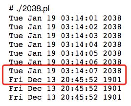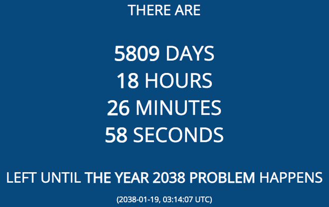 类似的案例还有很多,比如航空公司无法正常登机、售票系统瘫痪、交通设施发生故障等,严重影响着人们的出行和生活。 其实,除了四年一遇的闰年日bug,在手机和电脑上还有其他跟日期有关的奇怪bug,比如—— 世界末日到底是哪一天? 这个无厘头的问题一直有着各种各样的离奇答案。当你打开手机系统设置(不是日历),关闭自动设置时间,往未来的方向滑动数字时,你会发现时间停在了2038年。 小米、华为可以设置到2037年12月31日,iPhone也只多两天 不仅是手机,在电脑上,当你尝试将时间从2037年再往上调整时,会发现不管怎么按设置按钮,日期都不会继续改变。 日期调整超过2038年时,会停在2038年1月1日 2038年到底会发生什么?为什么各种设备都无法“逾越”2038年?在网上搜寻2038,你还能发现有人专门设置了倒计时网页。这其中包含了一个更加精确的时间:2038年1月19日 3点14分7秒。而下一秒,你的电子设备将会穿越回到1901年。 著名的“2038问题”,将在此刻爆发。 到“2038年问题”发生,还剩…… 2038年,时间“摧毁”系统 问题发生在2038年1月19日 3点14分7秒的下一秒。这一天的03:14:08不会到来,迎接你的将会是1901年12月13日20:45:52。 使用脚本模拟系统时间,会出现时间的跳变(平台 Debian GNU/Linux (内核 2.4.22))丨William Porquet/deepsky.com 对于很多电子设备而言,这是个毁灭性的打击。文件的创建与修改、应用软件的运行、网络系统的同步……时间作为一个关键数值,在整个电子系统里起着绝对重要的作用。因此有一阵子苹果手机的语音助手Siri,还把这一天当成了“世界末日”。为什么是这一天?Siri回答中的关键词也给出了答案。 早期Siri对于世界末日问题的回答(新版本系统已无此回答) Unix、32位,这两个词让2038年的这一天注定成为末日。Unix是一种操作系统,这种系统中计时方式是以1970年1月1日 00:00:00为基准,按秒为单位进行增减。比如到2022年1月1日0点,只需要用基准值加上1640966400秒。而我们现在使用的安卓、苹果系统都属于类Unix系统,采用了同样的方案。 电子系统使用0和1对数据进行储存,也就是二进制。如果只用1位数,只能表示0和1,如果2位数,则可以用00、01、10、11分别表示0、1、2、3这四个数。随着位数的增加,二进制可以表示的数也越来越大,但总会遇到上限。如果用32个0、1储存数字,第一位表示符号,0代表+,1代表-,则剩下31位最大可以表示2147483647。在计算机资源非常宝贵的年代,用32位来放置时间,已经很够用了。 1970年1月1日00:00:00 + 2147483647秒 = 2038年1月19日 3点14分7秒。下一秒,数据就会出现“装不下”的情况,发生溢出。此时第一位符号位从0变成1,本来的加号变成了减号,时间突然穿越到过去。 从上到下分别是二进制秒数、对应的十进制秒数、32位Unix系统时间、实际时间。超过2147483647后,符号位会变成1(负号),整个数字会突然发生翻转,回到1901年。丨Pemu/Wikicommons 这个存在于将来的问题,它会给我们带来怎样的影响?回溯过往,一次又一次的“千年虫”问题已经给了我们一些预告。 千年之外的千年虫 2000年,千禧年。而在很多应用程序看来,这一年会变成1900年。 同样因为硬件资源宝贵,早期程序使用了年份的后两位数字来表示日期,而前两位数都默认为19。这个不起眼的时间问题,在整个世界引发了巨大的关注。政务系统、银行系统、航空系统等多个系统都可能受到影响而失效。全球各地对这一问题进行了响应,试图解决这一问题。我国多次发文强调这一问题的重要性。美国也推出了有关千年虫问题的法案,以敦促各行业共享信息解决此类问题。 全球各地对“千年虫”采取行动丨人民日报网络版 多亏人们对“千年虫”的高度重视,使得这一问题在集中爆发前得以解决。但在此之后,类似“千年虫”的事件却依然层出不穷。 2010年的第一周,德国约3千万张银行卡同时“失效”。持卡人不仅无法直接刷卡消费,连在自动取款机上取钱都成问题。这不仅影响了本国居民的生活,也使得在外度假的德国人滞留在当地。 由于不同编码方式存在差异,2010在德国的银行系统中被错误地识别成2016。银行卡也因此“被过期”了。同样的情况出现在使用Windows Mobile系统的手机上:你在2010年第一天收到的新年短信,会被系统显示成2016年。 德国加速修复了银行系统,所幸没有造成更大的损失。但放眼太空,事情就没那么简单了。2013年9月,航天器Deep Impact突然失联,迫使美国航空航天局宣布相关探测任务正式结束。Deep Impact的首席任务科学家 Mike A'Hearn认为,这是一个“千年虫问题”。航天器的部分软件无法正确识别2013年8月11日之后的日期,导致计算机不断重启。最终,科学家们失去了航天器的信号。 Deep Impact与坦普尔1号彗星相遇模拟图丨NASA 就在2022年初,“2022年虫”让微软的程序员体会了新年大加班。1月1日,微软的邮件服务系统Exchange突然中断,使用该服务的用户都无法发送电子邮件。微软随后给出了声明,称该问题与日期检查失败以及新年的变化有关。简单点说,和2038问题一样,时间“溢出”了。好在微软团队加班加点,在当天解决了该问题。 在未来,“类千年虫”问题一定还会出现。对于可以预料的问题,人们已经开始尝试提供解决方法。比如使用新的格式存储时间信息。与此同时,系统团队提供的新内核也在解决32位平台上的“历史问题”。你也不用太担心,毕竟到那时,你应