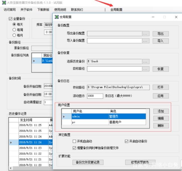 ![]() 利用大势至服务器文件备份系统除了可以对文件进行备份操作外,还可以针对备份配置信息、备份文件及其存储位置进行管理,同时还可以对用户进行设置,此外还可以对备份文件变更进行记录。