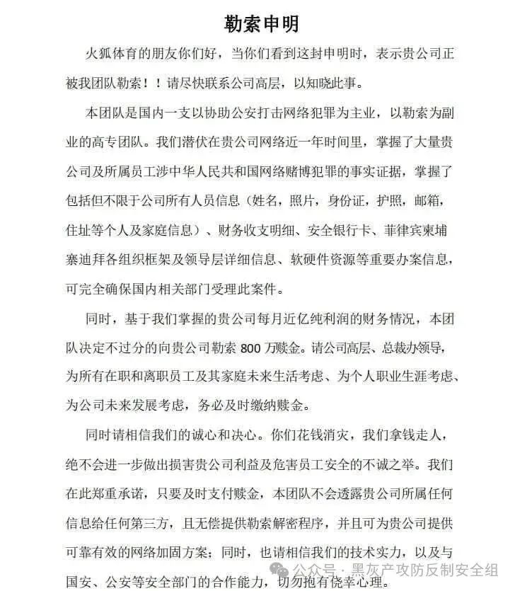 此外,黑客还猖狂地声称,如果京鼎付费,他们将提供解密软件并销毁被盗数据,并建议京鼎“将这种情况简单地视为对企业系统管理员的付费培训”,最后还威胁称“如果不支付赎金,将来会再次攻击并摧毁您的公司”。 白帽子转黑潜伏火狐体育一年 火狐体育中标:黑客团队表示自己是白帽子,勒索搞钱是副业。且潜伏在火狐体育一年而未被察觉。记得我们的爱国厂也是被美国间谍组织潜伏IT系统许久未被发现,盗取华为内部大量机密文件。