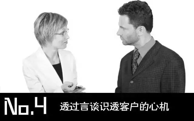相信这个问题很多销售都曾一度陷入沉思,为什么一个客户跟我看了N次但就是不跟我成交呢?归根到底其实就是自己的修行还没到家,今天我们就来学9招销售的技巧吧! 1、倾听客户需求。 2、改进产品和服务。 销售人员首先应该扮演好听众,而后才是演说家。 1、让客户把话说完,不要打断对方。 2、努力去体察客户的感情。 3、全身关注地聆听,不做无关的动作。 4、要注意反馈。聆听客户的谈话要注意客户的反馈,及时验证自己是否已经了解客户的意思。 5、不必介意客户谈话时的语言和动作特点。注意放在客户谈话的内容上。 6、要注意语言以外的表达手段。 7、要使思考的速度与谈话相适应。思考的速度比讲话的速度快若干倍,因此在聆听客户的谈话时,大脑要抓紧工作,勤于思考分析。 8、避免出现沉默的情况。 认真倾听,是增进你与客户信任的催化剂。学会倾听客户谈话的销售人员,会真正走进客户的心理,因此能够在双方之间建立信任和默契。 1、“潜台词”之一:价格比别人高,难以做决定。 2、“潜台词”之二:我对你不了解,风险太大,再考虑考虑。 3、“潜台词”之三:你说的这些不是我真正关心的。 1、对他人评头品足的人,嫉妒心比较重。 2、说话暧昧的人,喜欢迎合他人。 3、话家常的人,想跟你套近乎。 4、避开某个话题的人,内心潜藏着其它目的。 5、论断别人的人,比较有心机。销售人员不要过于听信客户的这种论断,而要善于分析其中的玄机,不能影响销售。 6、恶意指责别人的人,有强烈的支配欲。 7、见风使舵的人,非常容易变脸。 8、爱发牢骚的人,心眼小,不能装下更多的事。不大可不必把他们的话放在心上,只需要按原计划行动即可。 9、诉诸传统的人,思想保守。 在生意场上,销售人员必须打起12分的精神,从客户的每句话中找到有价值的情报。 1、在正式的场合发言中,客户一开始就清喉咙。表明他有点紧张。 2、说话时不断清喉咙,改变声调的人,可能还有某些焦虑。 3、有的清嗓子,是因为他对问题还是迟疑不决,需要继续考虑。 4、故意清喉咙则是对别人的警告,表达一种不满的情绪。 5、口哨声有时是一种潇洒或处之泰然的表示。说明客户胸有成竹,表现出了十足的信心。对此销售人员要想好对策,避免陷入对方的圈套中。 6、内心不诚实的人,说话声音支支吾吾,这是心虚的表现。 7、内心卑鄙的客户,心怀鬼胎,因此声音阴阳怪气,非常刺耳。 8、内心清顺的客户,言谈清凉平和。 9、有叛逆企图的人,说话时常有几分愧色。 10、财大气粗的人,言辞上会有过激之声。 11、污蔑他人的人闪烁其词,丧失操守的人言谈吞吞吐吐。 12、浮躁的人喋喋不休。 销售人员不能只注重表面的言辞,而要听懂客户的画外音,才能拿捏客户的心理。 1、内心平静,声音也就心平气和。 2、内心清顺时,就会清凉和畅的声音。 3、速度快的人,大都能言善辩。 4、速度慢的人,则较为木讷。 人外在的声音随着内心世界变化而变化,所以说:“心气之争,则声变是也。” 1、善于使用恭敬用语的客户。多圆滑和世故。 2、多使用礼貌语的客户。心胸比较开阔,有一定的包容力。 3、说话简洁的客户。性格豪爽、开朗、大方。 4、说话拖拖拉拉废话连篇的客户。责任心不强。 5、说话习惯用方言的客户。感情丰富而特别重感情。 6、善于劝慰他人的客户。才思敏捷。 7、在谈话中好为人师的客户。喜欢卖弄,要走进他们的内心,根本的一点事满足他们好为人师的心理。 8、肆意诬蔑他人的客户。心胸比较狭窄,在接触的过程中,你一定要善于掩盖自己的才干,展露自己的普通的一面,从而避免引起对方的猜忌。 9、说话尖酸刻薄的用户。这种人时常会遭到周围人的厌恶。“态度决定一切”,语态决定一个人的性格,也决定了客户以怎样的心态去面对销售人员,进而赢得大单。 1、“我个人的想法是···”“是不是···”“能不能···”和蔼可亲,能做到客观理智,冷静分析,然后做出正确的判断。 2、经常使用流行词汇的人。随大流,喜欢浮夸,缺少个人主见和独立感。 3、经常使用“却是如此”的人。大多是浅薄无知。 4、“绝对”多的人。武断的性格显而易见。 5、经常使用外来语言和外语的人。虚荣心强,爱卖弄和夸耀自己。 6、“我早就知道了”有表现自己的强烈欲望。 7、“这个···”“那个···”“啊···”说话办事都比较小心谨慎。 8、“果然”的人。多自以为是,强调个人主张。 9、“其实”的人。表现欲望强,希望能引起别人的注意。 10、“最后怎么样怎么样”潜在的欲望没有得到满足。 11、“我····”寻找各种机会强调自己,以引起他人的注意。 12、“真的”之类强调词语的人。缺乏自信。 13、“你应该···”“你不能···”“你必须···”多专制、固执、骄横,但对自己却充满了自信。 14、经常使用地方方言,并且底气不足,理智气壮的人。自信心强,有个性。 15、“我要···”“我想···”“我不知道···”思想比较单纯,意气用事,情绪不是很稳定。 口头语是由于长期、高频使用而形成的,具有鲜明的个人特色,是一个人内在性格的口头体现。 1、抱着热情与负责的态度去倾听。好的倾听者,用耳听内容,更用心听情感。 2、倾听时要避免不必要的干扰。 3、做一个主动的倾听者。行动胜过言语,主动倾听对方的讲话,事实上就是用一种无声的语