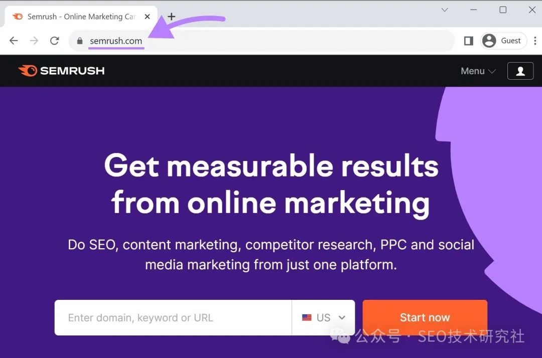 如果您正在构建一个新网站。而且您希望它在 Google 搜索结果中排名靠前。但是,您如何确保您的网站从一开始就对 SEO 友好呢? 这就是本指南的全部内容。我们将引导您完成改善新网站 SEO 所需采取的确切步骤。 提示:创建一个免费的 Semrush 帐户以按照本指南中的步骤进行操作。 如何为新网站做SEO查看我们为您的新网站提供的九大 SEO 技巧: ![]() 1. 选择一个简洁有效的域名您的新网站首先需要的是域名。 域名是您网站在互联网上的地址。这是人们在浏览器中输入的内容,以找到您的网站。 例如,“semrush.com”是 Semrush 的域名。 ![]() 拥有一个简洁有效的域名非常重要。它可以帮助您吸引更多流量并建立您的品牌。 以下是选择好域名的一些提示: