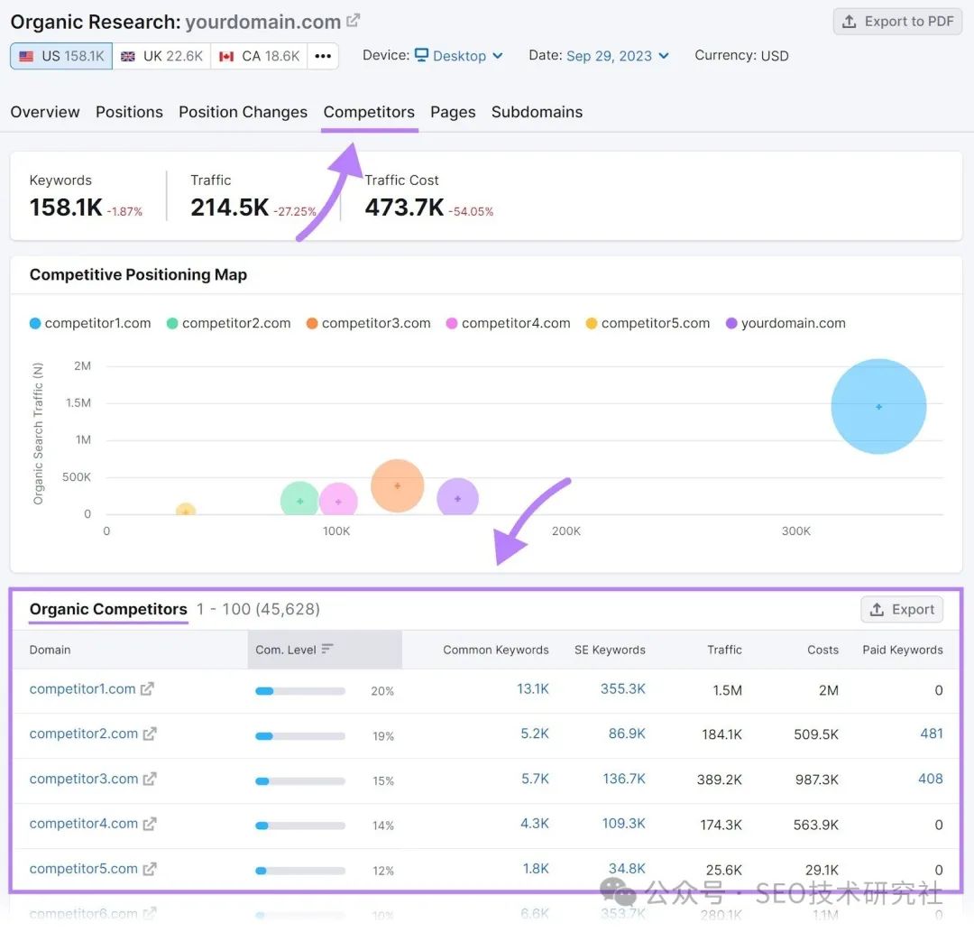 5.研究你的SEO竞争对手SEO竞争对手研究是分析竞争对手的SEO策略、优势和劣势的过程。 然后利用这些见解来改善你的SEO。 通过竞争对手分析,您可以: