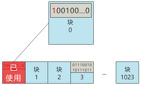 那我们就用 0 号块,来记录所有块的使用情况吧!怎么记录呢?
