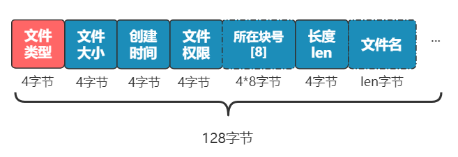 这些东西自然也要保存在硬盘上,我们选择用一个固定大小的空间,来表示这些信息,多大空间呢?128 字节吧。