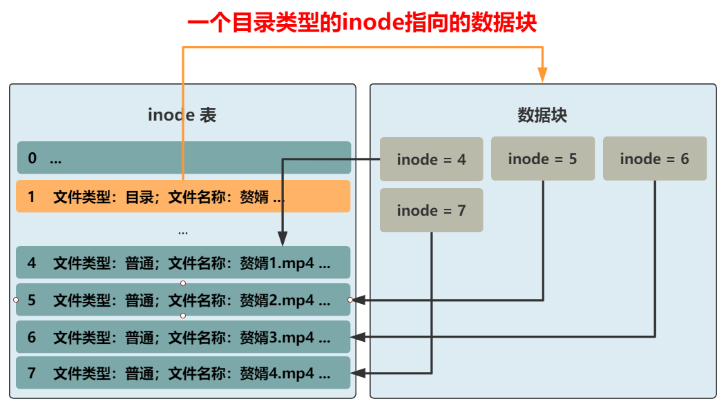 但如果是目录文件,则这个 inode 所指向的数据块,就需要重新规划了。