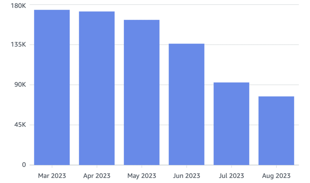 把应用搬下云非常值得庆祝,但看到实际开支减少才是真正的奖励。你看,要将云端的价格从“荒谬”的程度降至“冒犯”的唯一方式是“预留实例”。就是你需要签约承诺在一年或者更长时间范围里,消费支出保持在某个水平上。因此,我们账单并没有在应用搬离后立即塌缩。但是现在,它要来了。哦,它就要来了!