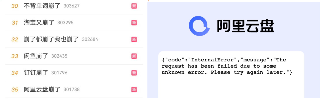 不过大量依赖阿里云服务的应用 APP,包括阿里自己的一系列应用:淘宝,钉钉,闲鱼,… 都出现了问题。产生了显著的外部影响,APP崩了的新闻组团冲上了热搜。淘宝刷不出聊天图片,闪送上传不了接单凭据,充电桩用不了,原神发不出验证码,饿了么下不了单,骑手进不了系统,点不了外卖、停车场不抬杆、超市无法结账。甚至有的学校因此无法用智能公共洗衣机和开水机。无数在周末休息中的研发与运维人员被喊起来加班排障……