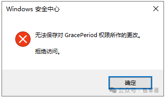 可以看到,该注册表项下面有一个二进制注册表数据,我们只要删掉这一项就可以了。但是,如果我们是首次操作的话,一般是没有权限的,需要右击GracePeriod选择“权限”变更注册表的权限。