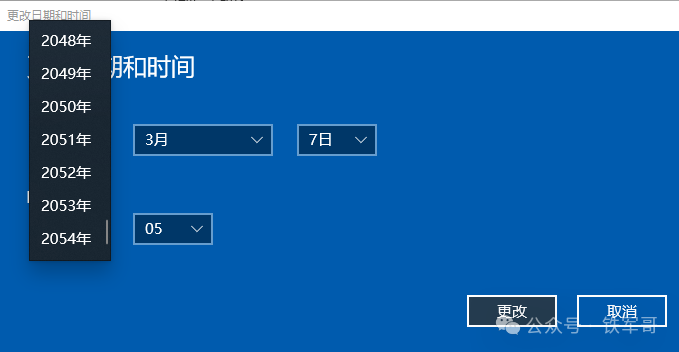 如果感觉还是不爽怎么办?修改注册表之后,在重启服务器之前,我们将系统时间修改的尽量靠后。在系统设置中,支持配置的最晚时间是2054年。