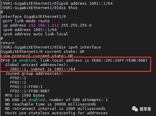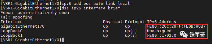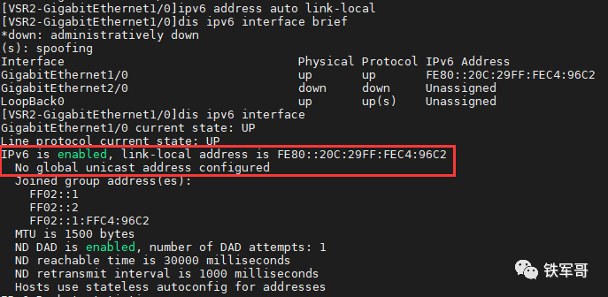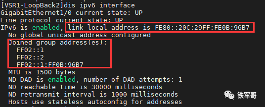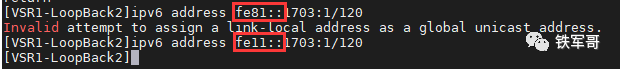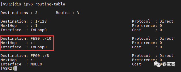 然后我们给另一台路由器配置一个本地地址,可以看到VSR2是没有全球单播地址的。