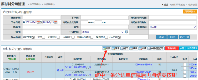 结案成功本窗口自动关闭 返回分切界面重新点击查询,本单的状态就变已结案 如下图 点晴模切ERP更多信息:http://moqie.clicksun.cn,联系电话:4001861886 该文章在 2024/3/15 16:39:43 编辑过 |