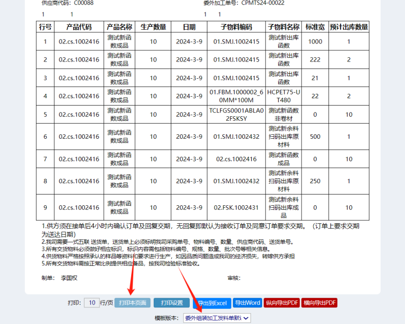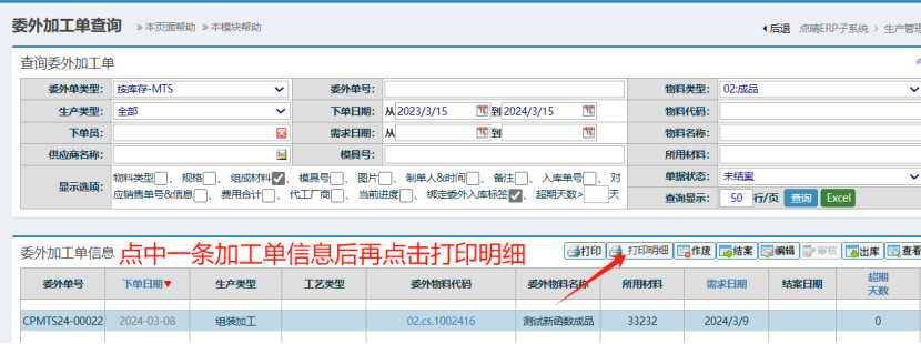 [点晴永久免费OA]点晴ERP-委外组装加工打印明细委外工单