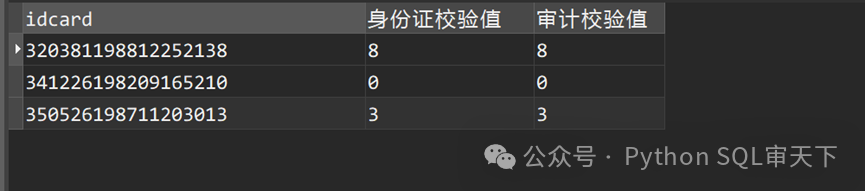可以看到,身份证校验值和审计校验值是一致的。