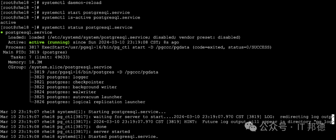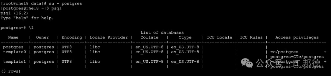 3.RPM离线安装 3.1 安装 https://ftp.postgresql.org/pub/repos/yum/16/redhat/rhel-8.1-x86_64/ 1.RPM包下载安装 数据库lib库 rpm -ivh postgresql16-libs-16.2-1PGDG.rhel8.x86_64.rpm 客户端安装包下载安装 rpm -ivh postgresql16-16.2-1PGDG.rhel8.x86_64.rpm 数据库主程序下载安装 rpm -ivh postgresql16-server-16.2-1PGDG.rhel8.x86_64.rpm 2.环境变量配置 su - postgres cat >> ~/.bash_profile <<"EOF" export LANG=en_US.UTF-8export PS1="[\u@\h \W]\$ " export PGPORT=5432export PGDATA=/pgccc/pgdataexport PGHOME=/usr/pgsql-16export PATH=$PGHOME /bin:$PATH :.export PGUSER=postgresexport PGDATABASE=postgres EOF 3.数据库初始化 mkdir -p /pgccc/{pgdata,archive,scripts,backup,pgsql-16,soft} chown -R postgres:postgres /pgccc chmod -R 775 /pgccc su - postgres /usr/pgsql-16/bin/initdb -U postgres -E utf8 -D /pgccc/pgdata3.2 避坑 1.自启动管理 可以通过Linux8的systemctl的管理方式进行管理, 还可以设置开机自启动 vi /etc/systemd/system/postgresql.service [Unit] Description=postgresql.service After=network.target [Service] Type=forking User=postgres Group=postgres WorkingDirectory=/var/lib/pgsql ExecStart=/usr/pgsql-16/bin/pg_ctl start -D /pgccc/pgdata ExecReload=/usr/pgsql-16/bin/pg_ctl restart -D /pgccc/pgdata ExecStop=/usr/pgsql-16/bin/pg_ctl stop -D /pgccc/pgdata PrivateTmp=true [Install] WantedBy=multi-user.target systemctl daemon-reload systemctl start postgresql.service systemctl enable postgresql.service 2.在Liunx安装的时候,PG16一般建议基于Liunx8,兼容性较高