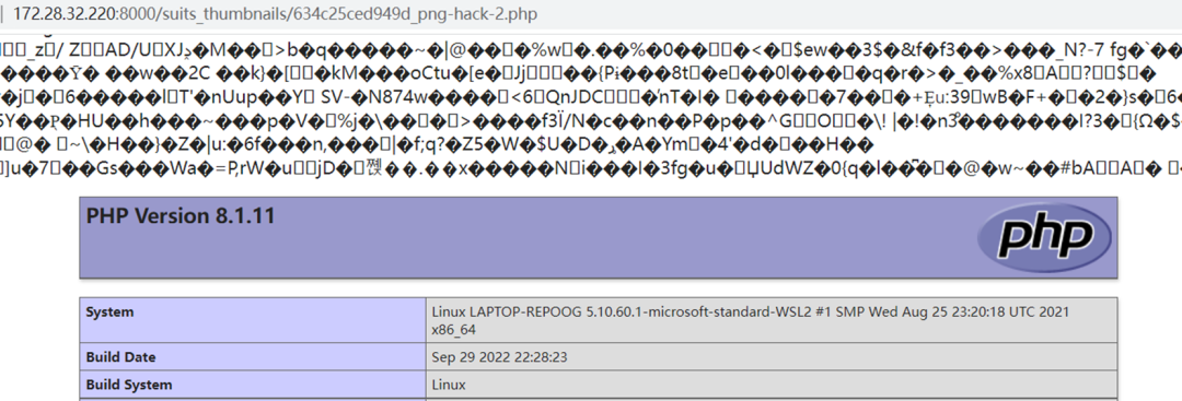 PNG文件后缀修改为PHP后上传,即可实现PHP代码任意执行。