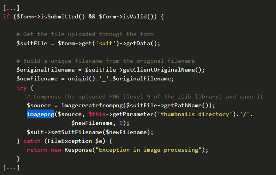 使用直接代码植入的PNG图片经过压缩后会失去植入的代码,从而导致漏洞利用失败。