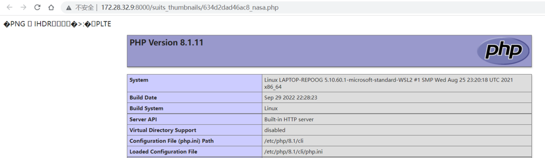 上传nasa.php文件至文件上传,即可执行phpinfo()函数: