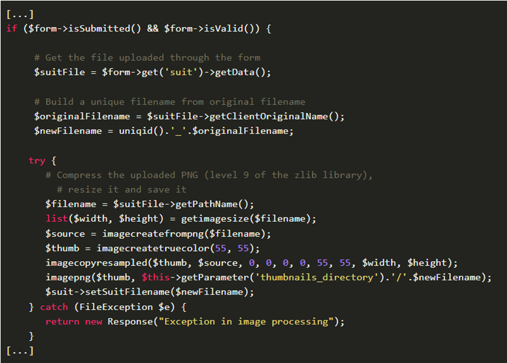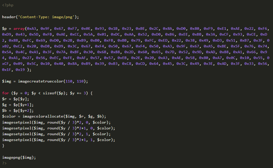 一个相对负载但有效的办法是将PHP代码植入到PNG文件的IDAT块,这些块中包含文件的真实数据,比如PNG的像素,以3个字节记录的RGB颜色轨道。创建IDAT块的时候,PNG线过滤器先处理3个字节的像素,而后使用DEFALTE算法进行压缩。