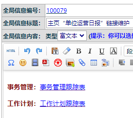 下面图例中放了两个链接,全局运营报告会显示在自己的内容上方。