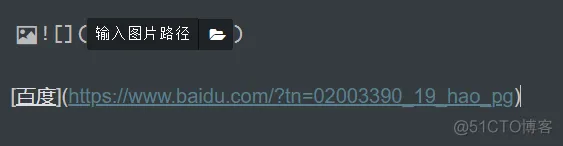 使用“[]()”,在中括号中添加文字,在小括号中添加路径 。