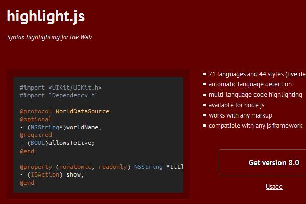 Highlight.js 是一个用于在任何web页面上着色显示各种示例源代码语法的JS项目。支持 26 种代码格式化风格,54 种语言: – 1C, AVR Assembler, Apache, Axapta, Bash, C#, C++, CSS, DOS .bat, Delphi, Django, HTML, XML, Ini, Java, Javascript, Lisp, MEL (Maya Embedded Language), PHP, Perl, Python, Python profile, RenderMan (RIB, RSL), Ruby, SQL, Smalltalk, VBScript, 其他更多。