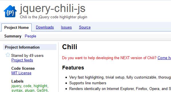Chili 是个 jQuery 代码高亮插件,可以快速的进行代码高亮,设置非常简单,完全自定义,而且有着完整的文档。