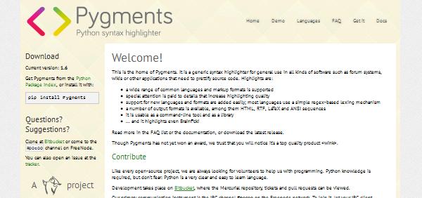 Pygments 是个通用代码语法高亮工具,许多常用的软件都使用了这款工具,比如论坛系统,wikis 或者其他需要美化代码的应用。 Pygments 支持范围非常广泛的编程语言,和大量的输出格式,包括 HTML, RTF, LaTeX 和 ANSI 序列。