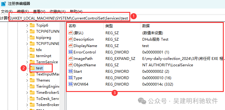 可以在Parameters键下创建其他参数,比如AppDirectory指定工作目录等。