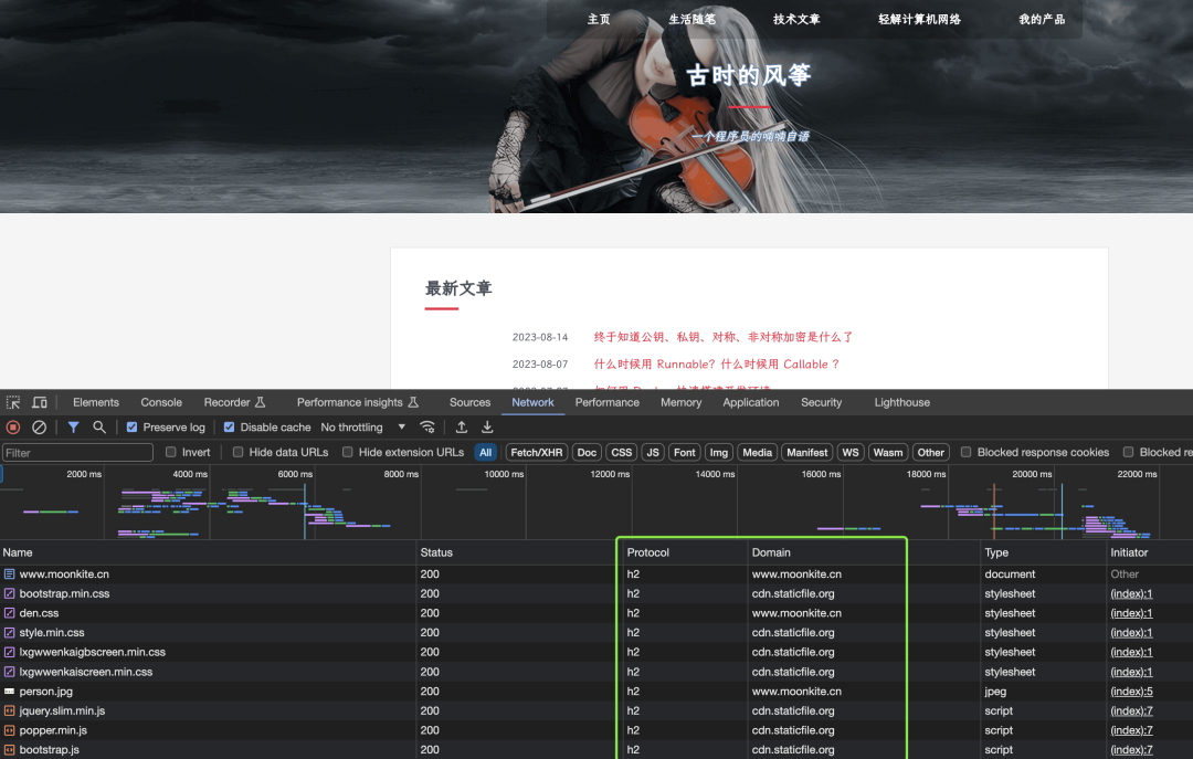 时至今日,互联网上大多数网站都已经支持 HTTP/2 协议了,你可以在浏览器开发者工具中看一下网络请求,其中的 Protocol 表示网络请求采用的协议。