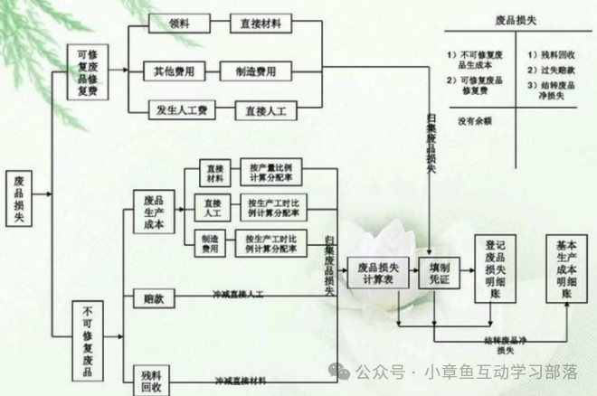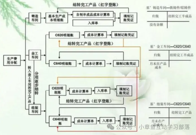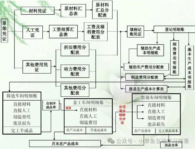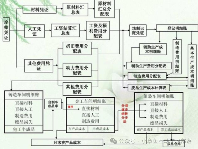一.什么是成本核算 1).什么是成本 2). 成本的分类 3). 什么是成本核算 成本核算是指将企业在生产经营过程中发生的各种耗费按照一定的对象进行分配和归集,以计算总成本和单位成本。成本核算通常以会计核算为基础,以货币为计算单位。成本核算是成本管理的重要组成部分,对于企业的成本预测和企业的经营决策等存在直接影响。进行成本核算,首先审核生产经营管理费用,看其已否发生,是否应当发生,已发生的是否应当计入产品成本,实现对生产经营管理费用和产品成本直接的管理和控制。其次对已发生的费用按照用途进行分配和归集,计算各种产品的总成本和单位成本,为成本管理提供真实的成本资料。 4).成本核算管理的体系模块架构 5). 企业成本核算的流程梳理 二.核算要点 1.确定成本核算的目的。成本核算有多种目的,如存货计价、计算销售成本和确定收益;成本决策和成本控制;产品定价等。 2.确定成本核算的对象。不同核算目的决定了对象的多样化。如以各种、各批、各生产步骤产品作为对象,计算产品的总成本和单位成本;以各个责任单位为对象,计算责任成本等。 3.确定成本核算的内容。成本核算内容一般包括费用归集分配与产品成本计算两部分。费用归集分配要求,首先必须确定成本开支的范围,明确各种费用支出的界限,对于不应计入产品成本的予以剔除;然后测定和记录所积累的成本数据,按照一定程序进行归集,采用一个标准在各个成本核算对象间进行分配,以汇总所耗用的费用总数。产品成本计算就是按照成本计算对象,把汇总的费用进行分配,计算出各个对象的总成本和单位成本。在工业企业,由于一个企业往往生产多种产品,而且月末通常存在在产品,因此还要将生产过程的费用在各种产品之间、产成品和在产品之间进行分配,以求得各种产成品的总成本和单位成本。 三.成本核算的步骤 从生产费用发生开始,到算出完工产品总成本和单位成本为止的整个成本计算的步骤。成本核算程序一般分为以下几个步骤: 1.生产费用支出的审核。对发生的各项生产费用支出,应根据国家、上级主管部门和该企业的有关制度、规定进行严格审核,以便对不符合制度和规定的费用,以及各种浪费,损失等加以制止或追究经济责任 2.确定成本计算对象和成本项目,开设产品成本明细账。企业的生产类型不同,对成本管理的要求不同,成本计算对象和成本项目也就有所不同,应根据企业生产类型的特点和对成本管理的要求,确定成本计算对象和成本项目并根据确定的成本计算对象开设产品成本明细账。 3.进行要素费用的分配。对发生的各项要素费用进行汇总,编制各种要素费用分配表,按其用途分配计入有关的生产成本明细账。对能确认某一成本计算对象耗用的直接计入费用,如直接材料、直接工资,应直接记入“生产成本基本生产成本”账户及其有关的产品成本明细账,对于不能确认某一费用,则应按其发生的地噗或用途进行归集分配,分别记入“制造费用”、“生产成本--辅助生产成本”和"废品损失”等综合费用账户。 4.进行综合费用的分配。对记入“制造费用”、“生产成本--辅助生产成本”和“废品损失”等账户的综合费用,月终采用一定的分配方法进行分配,并记,入“生产成本--基本生产成本”以及有关的产品成本明细账。 5.进行完工产品成本与在产品成本的划分。通过要素费用和综合费用的分配,所发生的各项生产费用的分配,所发生的各项生产费用均已归集在“生产成本--基本生产成本“账户及有关的产品本明细账中。在没有在产品的情况下产品成本明细账所归集的生产费用即为完工产品总成本;在有在产品的情况下,就需将产品成本明细账所归集的生产费用按一定的划分方法在完工产品和月末在产品之间进行划分,从而计算出完工产品成本和月末在产品成本。 6.计算产品的总成本和单位成本。在品种法、分批法下,产品成本明细账中计算出的完工产品成本即为产品的总成本;分步法下,则需根据各生产步骤成本明细账进行顺序逐步结转或平行汇总,才能计算出产品的总成本。以产品的总成本除以产品的数量,就可以计算出产品的单位成本。 四.成本核算的方法 1.设立材料明细帐,按主材,辅材分类 2.确定工时单耗(可以是计划工时,也可是实际工时) 3.按生产计划(或作业单)投料 4.汇总直接费用,(动力费,制造费,直接人工费),并按工时分摊费用。 5.按完工产品品种数量结转完工成本(在产品材料核算可以分步投料或全额投料或约当比例,生产周期短的在产品可以不分摊费用,待完工时时在分摊费用) 6.期初在产+本期投产-本期完工=本期在产(生产成本借方余额) 7.分类法: 以“产品类”作为成本计算对象、归集费用、计算成本的一种方法。 分类法的成本对象为产品“类”,在实际工作中,可以定义为:产品自然类别、管理需要的产品类别。 分类法下成本核算的方法要点,可概括如下:!以“产品类”为成本计算对象,开设成本计算单;"产品类”的成本计算方法同于“品种”;某“类产品”的成本计算出来后,按照下列方法再分配到具体品种,以计算品种的成本;类中选定某产品为“标准产品”;定义其他产品与标准产品的换算系统;按照换算系统之比例将"类产品”的成本分解计算到县体品种产品的成。【分类法适合于产品品种规格繁多,并且可