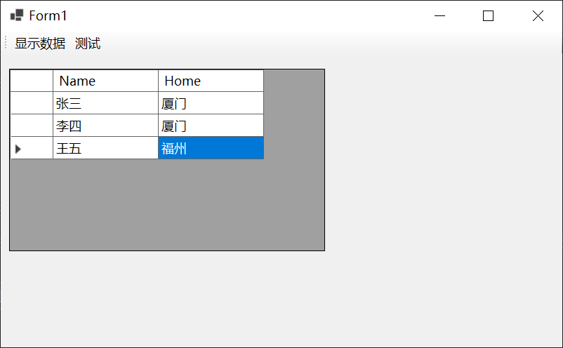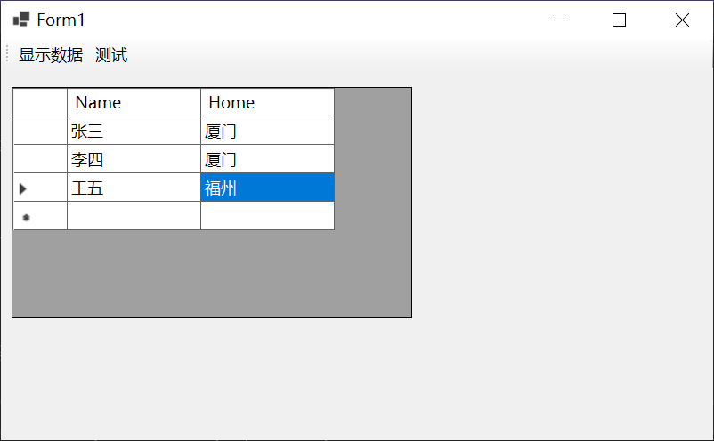 会发现dataGridView1上的数据不会发生变化,需要我们点击对应的空格之后才会发生改变,如下所示: