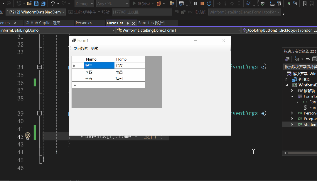 发现当数据的值发生改变时,dataGridView1会自动进行更新。