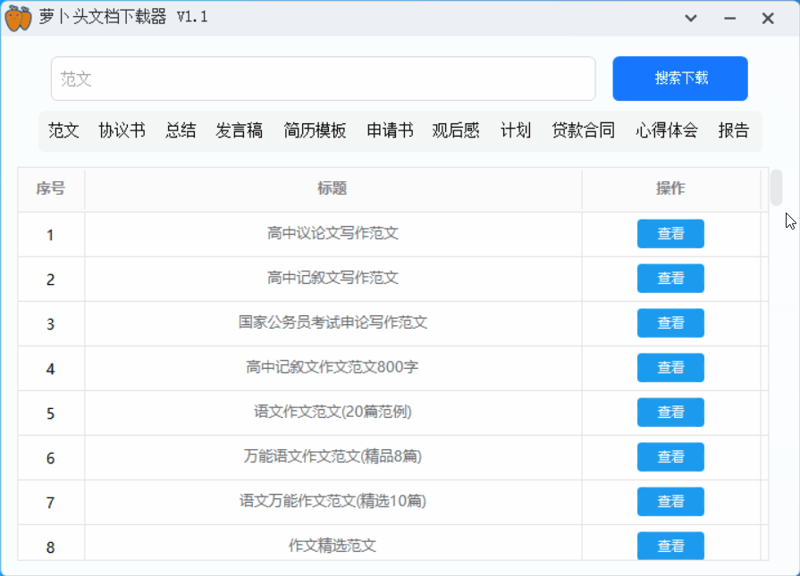 这款文档下载工具名为“萝卜头文档下载器(Windows)”,是一款集搜索、下载、管理于一体的全能型文档工具。首先,速文档拥有一个强大的搜索引擎,无论你需要的是行业报告、学术论文还是市场分析,只需在搜索栏输入关键词,相关文档就会以列表的形式呈现在你眼前。更为人性化的是,这个搜索功能还支持模糊查询,即便你记不清完整的文件名或者作者,它也能帮你找到最接近的结果。
