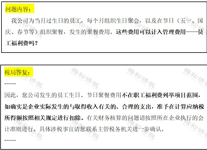 出差请客户吃饭, 计入业务招待费还是差旅费? 什么是业务招待费? 简单来说就是3点特征:以企业经营为目的、企业与被招待人存在业务关系、合理支出。 一、业务招待费和差旅费有什么区别? 业务招待费与差旅费的区别就是,前者是为企业外人员支出的费用,后者是为企业内部人员支出的费用。 比如,客户来公司谈项目,产生的住宿费由本公司承担,会计人员可以将这笔费用列入业务招待费;如果是本公司的员工到客户公司去谈项目,产生的住宿费还是由本公司承担,那就得计入差旅费了。 二、业务招待费和餐费有什么区别? 某员工要出差去广州陪客户,与客户一同登上广州塔,领导说费用自己全承包了吧,于是去广州塔的交通费、广州塔的门票费、结束之后宴请对方的餐费、赠送对方纪念品的杂费等,都囊括在业务招待费里面。 所以,给大家总结一下: 1.公司员工出差请客户吃饭的费用,尽管是员工出差所花费的费用,但本质上还是为了招待客户,建议大家直接计入业务招待费即可。 2.员工因为本次出差发生的路费,计入差旅费,为客户花费的路费,计入业务招待费。 赠送客户茶叶、茅台酒等 业务招待费是如何处理的? 如果茶叶、酒等是自产的,则视同销售: 借:销售费用——业务招待费 贷:库存商品 应交税费——应交增值税(销项税额) 如果茶叶、酒是外购的: (1)销售茶叶和酒的商贸公司将茶叶和酒送给客户,购入时: 借:库存商品 应交税费——应交增值税(进项税额) 贷:银行存款 赠送时: 借:销售费用 贷:库存商品 应交税费——应交增值税(进项税额转出) (2)一般企业买回茶叶和酒赠送客户: 借:销售费用——业务招待费 贷:银行存款 应交税费——应交增值税(进项税额转出)(如已抵扣进项税要作转出) 员工生日、节日聚餐费用 计入职工福利费还是业务招待费? 给大家总结如下: 1.虽然员工生日、节日聚餐的费用没有明文规定包含在职工福利费的范畴内,但如果是真实发生的,计入职工福利费有一定的合理性。 2.员工生日、节日聚餐费用如果真实发生,可以在企业所得税前扣除。 3.员工生日、聚餐的费用,属于公司内部的花费,计入业务招待费并不合理。 业务招待费的进项税是否能抵扣? 给大家总结一下就是: 1.企业一般意义上的业务招待费可能包括生产经营需要的宴请、旅游景点参观、娱乐以及住宿费用等,这些基本属于交际应酬费,相关专票的进项税额不能抵扣,只能做转出。 2.企业如果负担其他企业员工的差旅费,能不能抵扣进项税要综合业务的性质判断: 比如,A公司聘请B公司的员工维修一项机器设备,B公司员工因此产生的住宿费用由A公司负责。该项费用企业列入业务招待费,此时的住宿费非交际应酬性消费而属于生产性支出,可以抵扣进项税。 3.企业应严格区分业务招待费和会议费,不得将业务招待费内容计入会议费税前列支和抵扣,会议费正常情况下需要提供会议时间地点人员、会议记录等材料作为税前扣除的辅助材料,同时,其符合上述情况的会议费不属于交际应酬费范畴可以进项抵扣。 注意! 业务招待费常见10个涉税误区 1.用于业务招待费的礼品,未做增值税视同销售处理 根据《中华人民共和国增值税暂行条例实施细则》第四条规定:单位或者个体工商户将自产、委托加工或者购进的货物无偿赠送其他单位或者个人的行为,视同销售货物。 2.未将视同销售收入计入业务招待费扣除基数 根据《国家税务总局关于企业所得税执行中若干税务处理问题的通知》(国税函〔2009〕202号)第一条规定:企业在计算业务招待费、广告费和业务宣传费等费用扣除限额时,其销售(营业)收入额应包括《中华人民共和国企业所得税法实施条例》第二十五条规定的视同销售(营业)收入额。 企业在计算销售收入时未计算视同销售收入,很有可能导致当年业务招待费扣除限额降低或企业多缴企业所得税。 3.将所有的餐费计入业务招待费中 并非所有餐费都属于业务招待费,而是需要做好区分,以免导致企业多缴企业所得税。 但是,将餐费计入其他科目时,一定要注意留存好相应的材料,证明业务的真实。 4.将业务招待费计入其他科目 实务中,往往有很多企业为了能够不受到招待费限额的限制,选择将招待费计入到其他科目之中,以此来达到全额扣除的目的。 5.将与生产经营活动无关的费用计入业务招待费 根据企业所得税税前扣除的原则,费用的支出首先必须是与企业生产经营相关的,因此,对于那些与企业生产经营无关的费用,是不能税前扣除的。 6.取得不合规的招待费发票 如果公司外购礼品用于招待,务必取得公司抬头的发票。如果个人垫资购买,开具的是个人抬头的发票,或者无法取得发票只有收款凭证的,往往也不能税前扣除。 7.实际发生的业务招待费才能税前扣除 业务招待费据实限额扣除,只有实际发生的费用,才能够扣除,而不是按照限额直接计算扣除。 除此以外,对于无法证明真实性的业务招待费,也不得扣除。 8.非从事投资业务的企业,股息、红利和股权转让所得不作为基数 从事投资业务的企业,其业务招待费的扣除基数之所以包括股息、红利和股权转让所得,是因为此类公司取得的上述分红和转让所得属于其营业收入,而对于其他企业来说,上述所得并非营业收入。 而对于所有企业来说,按权益法核算的账面投资收益,以及按公允价值计量金额资产的公允价值变