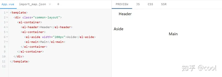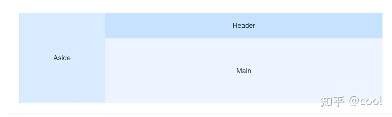 <template>   <div>     <el-container>       <el-aside width="200px">Aside</el-aside>       <el-container>         <el-header>Header</el-header>         <el-main>Main</el-main>       </el-container>     </el-container>   </div> </template>