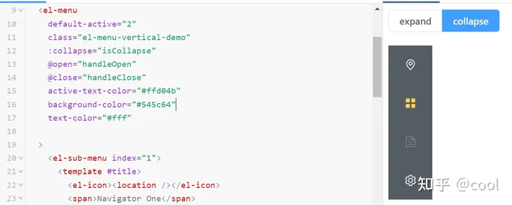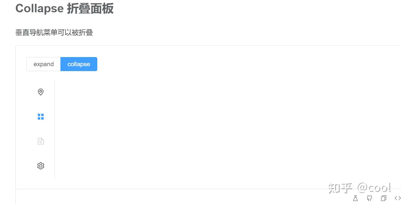 <el-radio-group v-model="isCollapse" style="margin-bottom: 20px">           <el-radio-button :label="false" v-if="isCollapse"             ><el-icon><fold /></el-icon>           </el-radio-button>           <el-radio-button :label="true" v-if="!isCollapse"             ><el-icon><expand /></el-icon           ></el-radio-button>         </el-radio-group>
