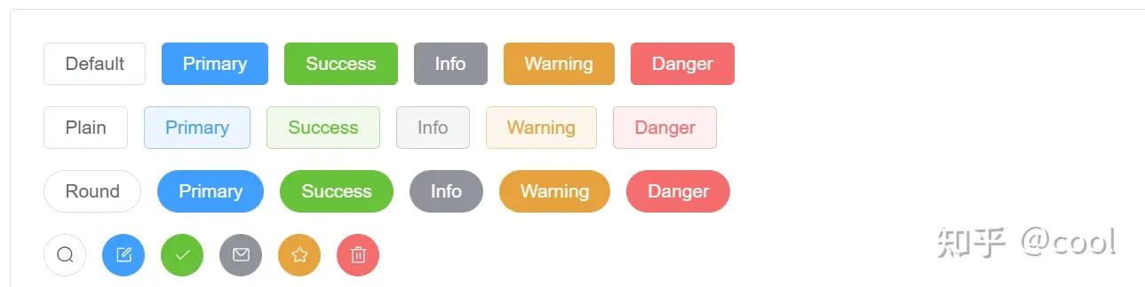 注:下面那种带图标的按钮可能需要引入额外的Element-icon