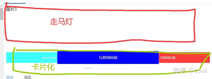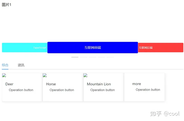 使用Element+的骨架,幻灯片,走马灯功能实现如下页面布局: