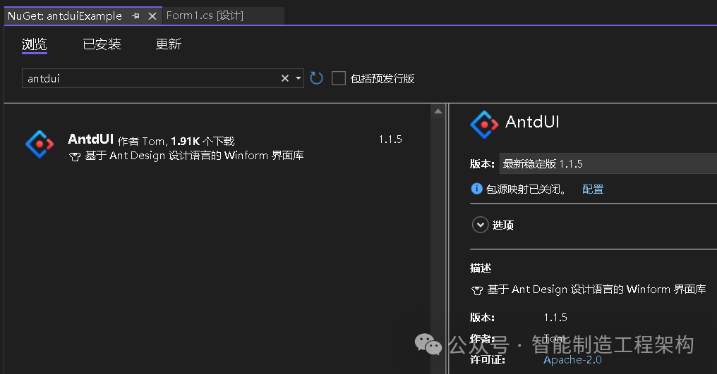 在项目中使用的话,通过NuGet搜索AntdUI安装即可。