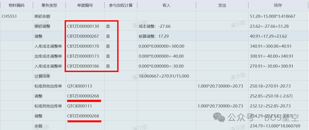 成本调整单(参与核算及存货报表统计) 【注意】成本调整单手工新增分两种情况, 1、非余额调整类型的调整单(包含入库调整、生产出库调整(手工新增)、其他出库调整(手工新增)、销售出库调整(手工新增)、委外出库调整(手工新增)),录入单据之后需要核算才能在存货相关报表中显示(并参与计算)。 2、期末余额调整类型的调整单,录入单据之后不用进行核算(存货相关报表就会显示),核算会自动删除期末余额调整类型的调整单。 如因为某些原因必须重新核算,可核算之后重新录入余额调整类型的调整单。 【注】出库成本调整单,业务类型为上期出库调整时,出库核算时不会往出入库序列中写该条数据,也会往库存余额表写该条调整金额。 这也是系统统计存货收发报表不是直接拿库存余额表的收入和发出(而是统计出入库序列+成本调整单)。 从图中可以看出: 1、入库成本调整单都参与加权计算; 2、出库成本调整单: 类型为[上期出库调整]的(上期成本调整在本期),参与加权计算; 类型为[其他出库调整]: 为手工新增的,参与加权(生产出库、销售出库、委外出库调整类型与其他出库调整一致【手工新增时参数加权计算】)。 为系统生成的(不参与加权),只影响期末余额(上图结存的余额减CBTZD00000268调整单,再算成本单价)。 这是库存维度余额表,收入219.63,发出36.12=出库单金额(20.73+20.73)+出库类且为核算生成的调整金额(-2.67+(-2.67)),期末金额234.79。 这是存货收发汇总表,查出的期末余额与库存维度余额的期末余额一致(这里期初也是一致,这里没贴出),而本期的收与发不一致。 这里出入库序列中没有系统自动生成的上期出库调整、生产出库、销售出库、委外出库调整类型、其他出库类型的出库成本调整单,这几种类型单据,在统计存货收入报表时再取这几种类型的成本调整单数据。 出库核算完后,再手工新增出库成本调整单,类型为期末余额时,再查存货收发汇总和核算明细报告。 可以看出明细报告成本单价与存货收发汇总不一样。不要用期末余额调整单来调整金额(该类型用于异常余额的期末调整,例,有金额无数量的)。 点晴模切ERP更多信息:http://moqie.clicksun.cn,联系电话:4001861886 该文章在 2024/4/18 16:23:01 编辑过 |