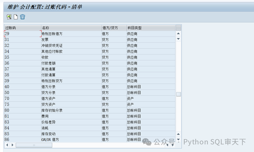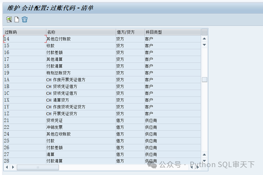 在SAP系统里录入凭证时,你会发现有个叫做记账码的东西。那么这个记账码到底有什么作用呢?我最初在学习SAP系统的时候,也是被搞得云里雾里半空里摸不着头脑,后来接触多了就慢慢习惯了。为了使后来人在学习该内容时不那么难理解,我简单做了一个总结,希望对您有所帮助。 记账码,英文是Posting Key,又称PK码或过账码。 记账码由两位阿拉伯数字或字母组成,用来区分各类记账事项,同时控制着行项目记账的账户类型、借方还是贷方记账以及行项目输入时的界面布局(字段状态组)等。这里所说的界面布局,你可以简单地理解为界面上显示了哪些字段。 SAP系统预设了50余种记账码。我们可以通过事务码OB41来查看系统预设的所有记账码。 关于科目类型这一列,有时你可能在系统中看到的都是一个字母,这个你大可不必担心,我也给你总结如下: